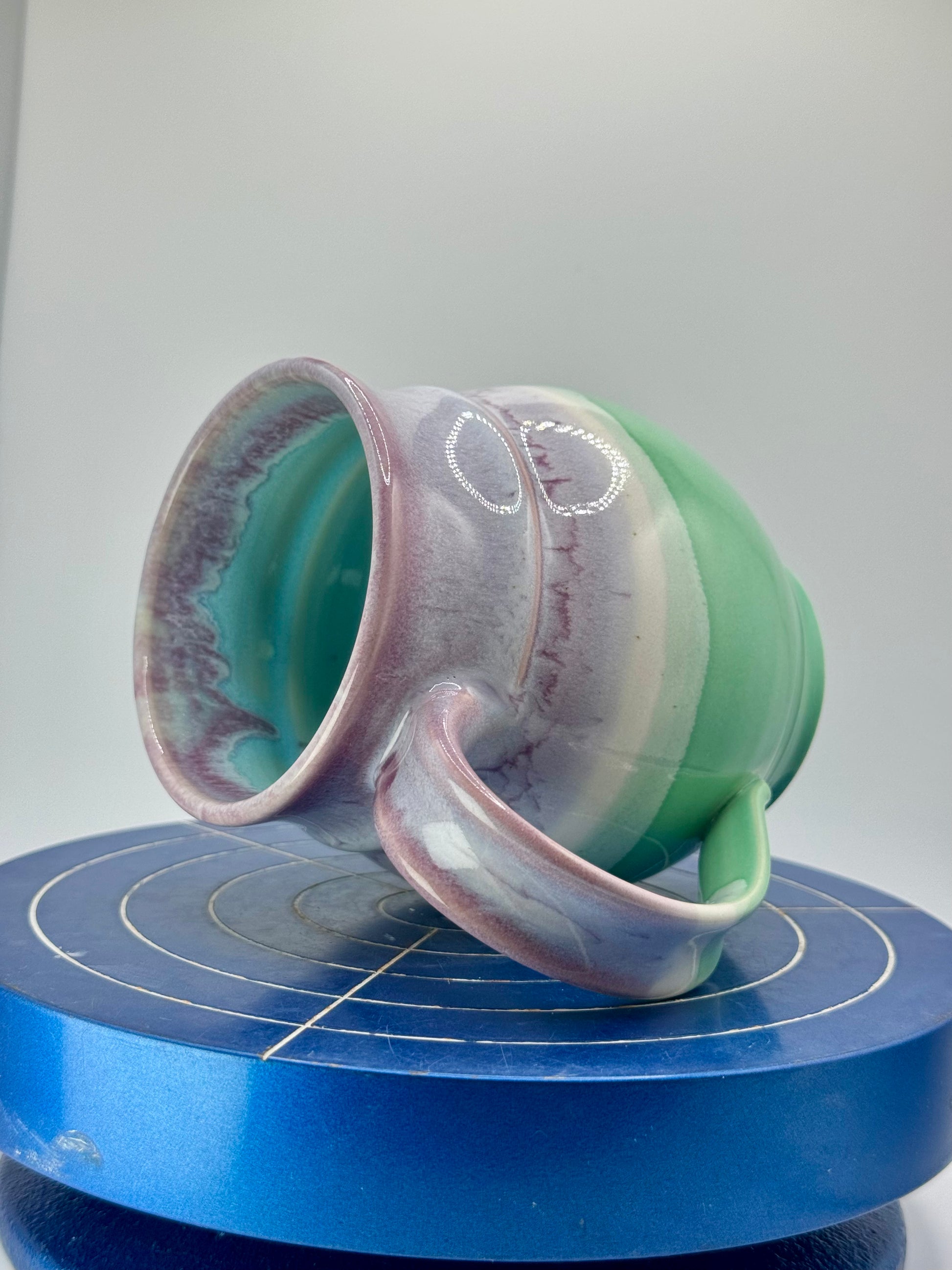 ~12oz handmade ceramic mug. Wheel-thrown stoneware with hand-painted glaze. Glossy finish. Dishwasher and microwave safe. Made for daily rituals, slow sips, and small moments that stay with you.