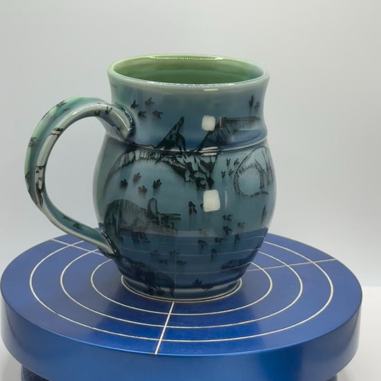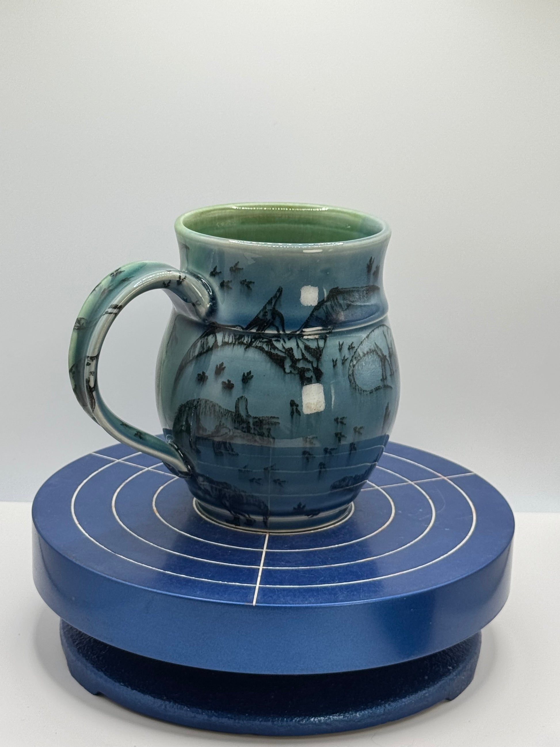 ~12oz handmade ceramic mug. Wheel-thrown stoneware with colorful glaze. Glossy finish. Dishwasher and microwave safe. Made for daily rituals, slow sips, and small moments that stay with you.