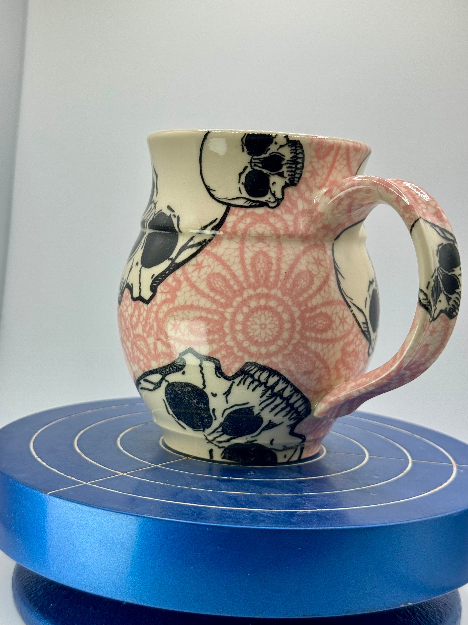 Pink Lace Graphic Skull Stoneware Coffee and Tea Mug