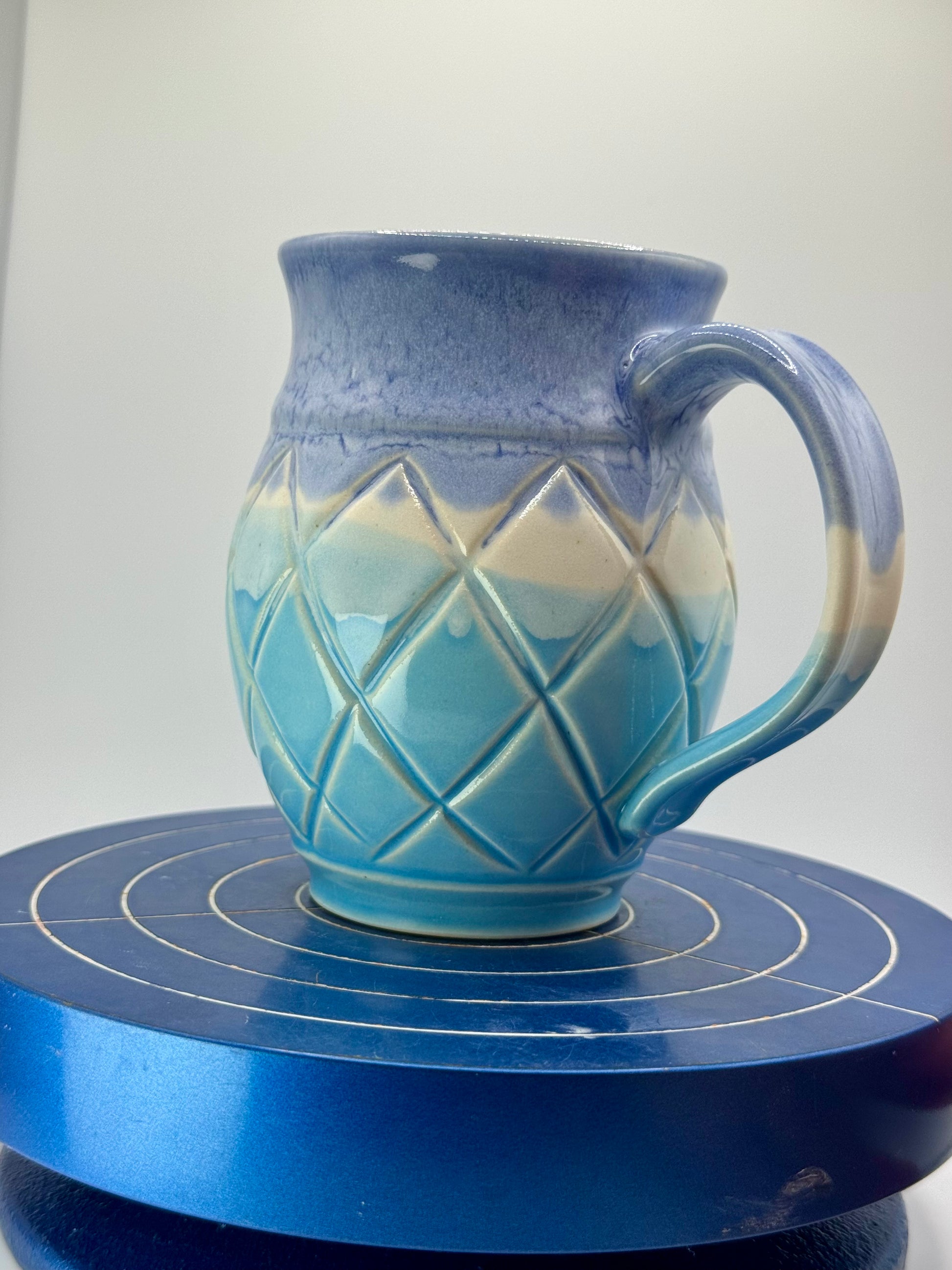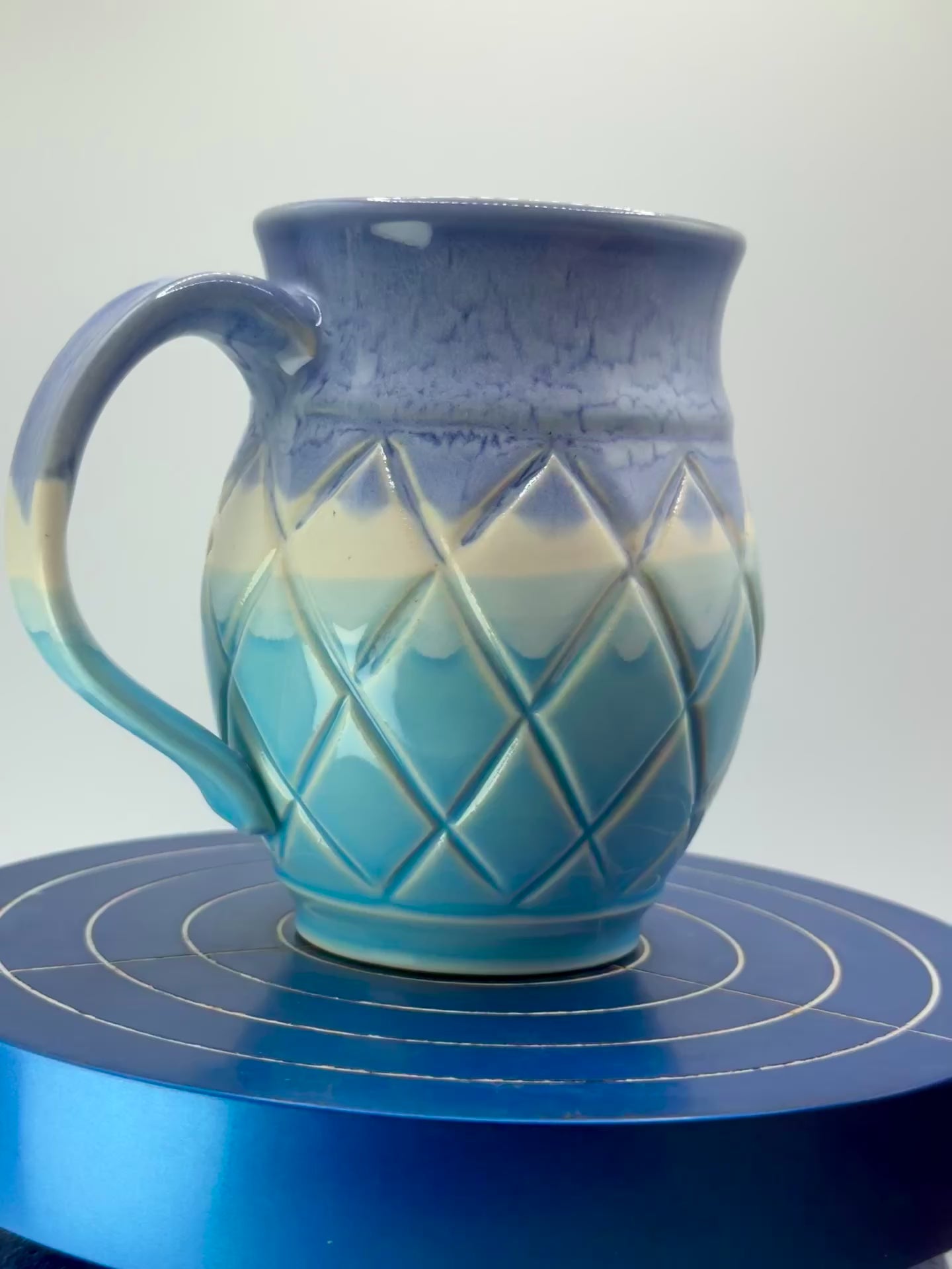 ~12oz handmade ceramic mug. Wheel-thrown stoneware with colorful glaze. Glossy finish. Dishwasher and microwave safe. Made for daily rituals, slow sips, and small moments that stay with you.