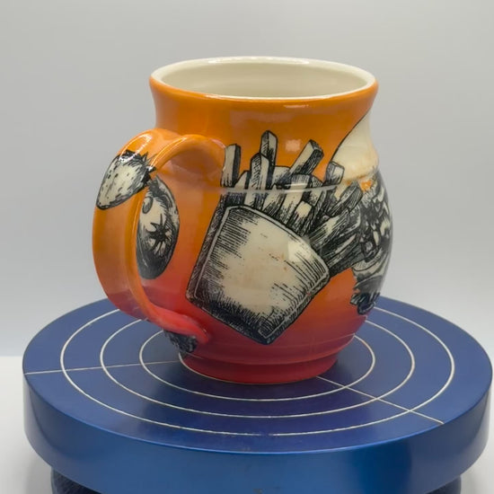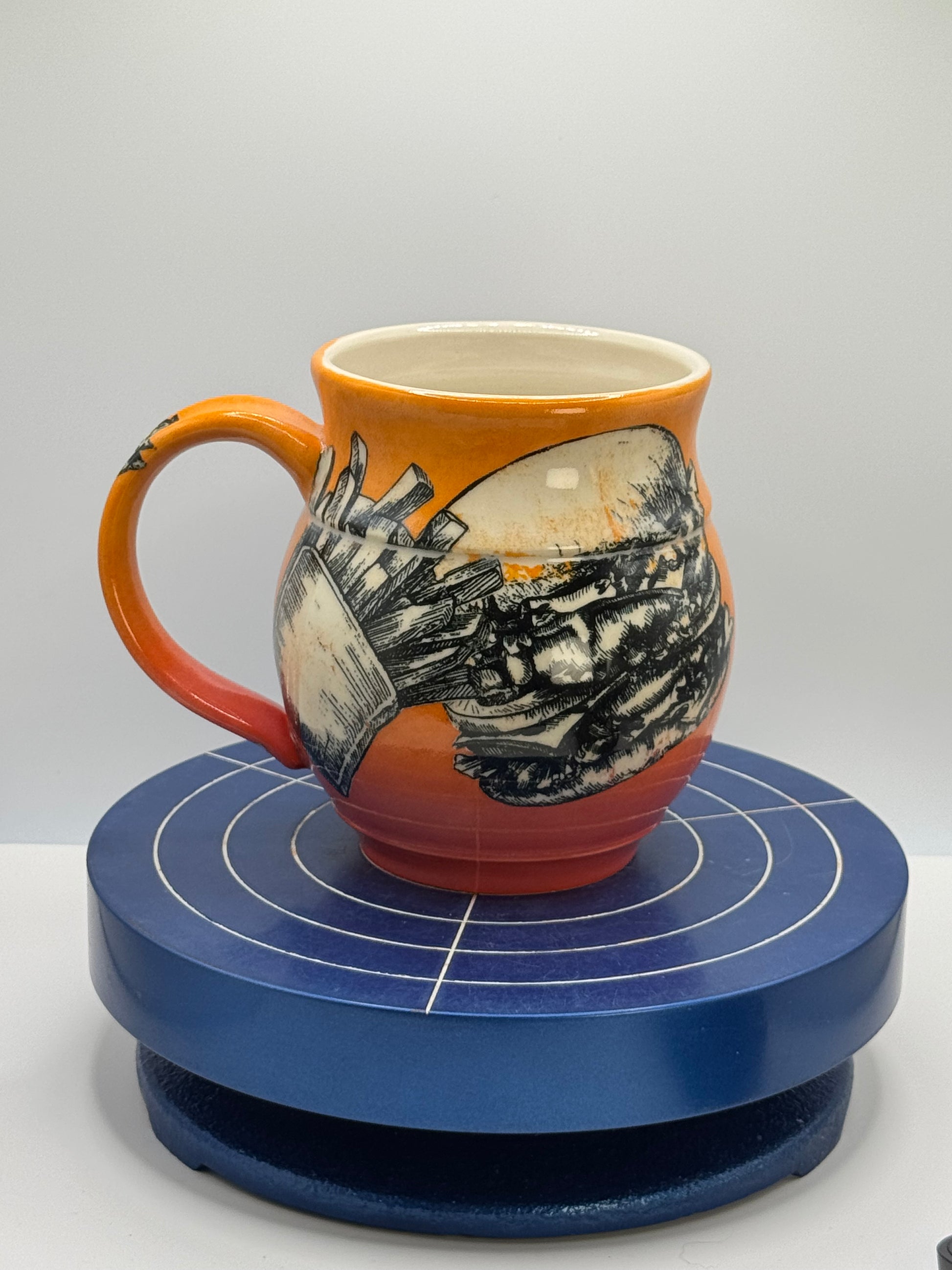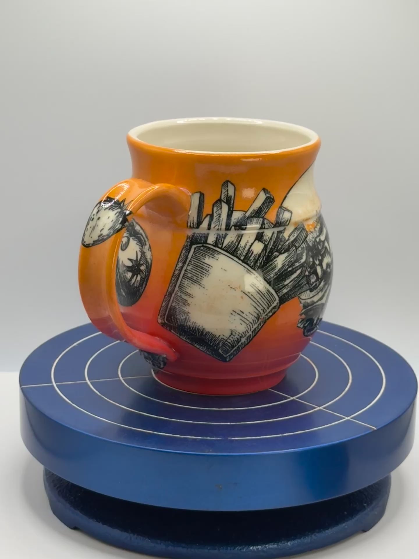 ~12oz handmade ceramic mug. Wheel-thrown stoneware with colorful ombré glaze. Glossy finish. Dishwasher and microwave safe. Made for daily rituals, slow sips, and small moments that stay with you.